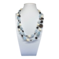 -Acquamarina naturale sfaccettata, avorio naturale liscio, quarzo fumè sfaccettato e punti luce in tono.
