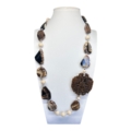 -Agata dendridica naturale tagliata a mano, Howlite naturale bianca liscia, maxi inserto in giada nefrite incisa a mano e punti luce in tono.