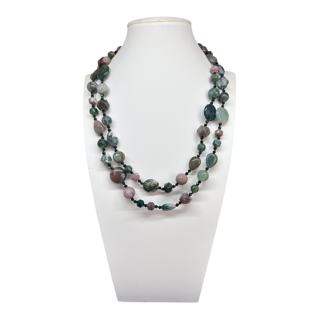 -Agata muschiata naturale liscia e sfaccettata e punti luce in tono.