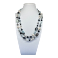 -Amazzonite naturale azzurro-nera liscia e sfaccettata, howlite bianca liscia, onice sfaccettato e punti luce in tono.