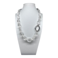 -Quarzo ialino naturale sfaccettato a mano e laterale a losanga in argento lucido 925 rodiato.