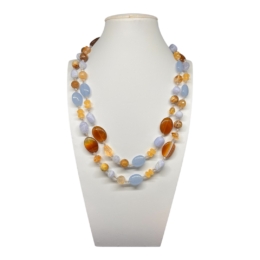 Il Calcedonio si presenta generalmente in forma di croste di colore uniforme o zonate con striature colorate di varie tonalità. Sono frequenti gli aggregati tondeggianti e nodulari.
